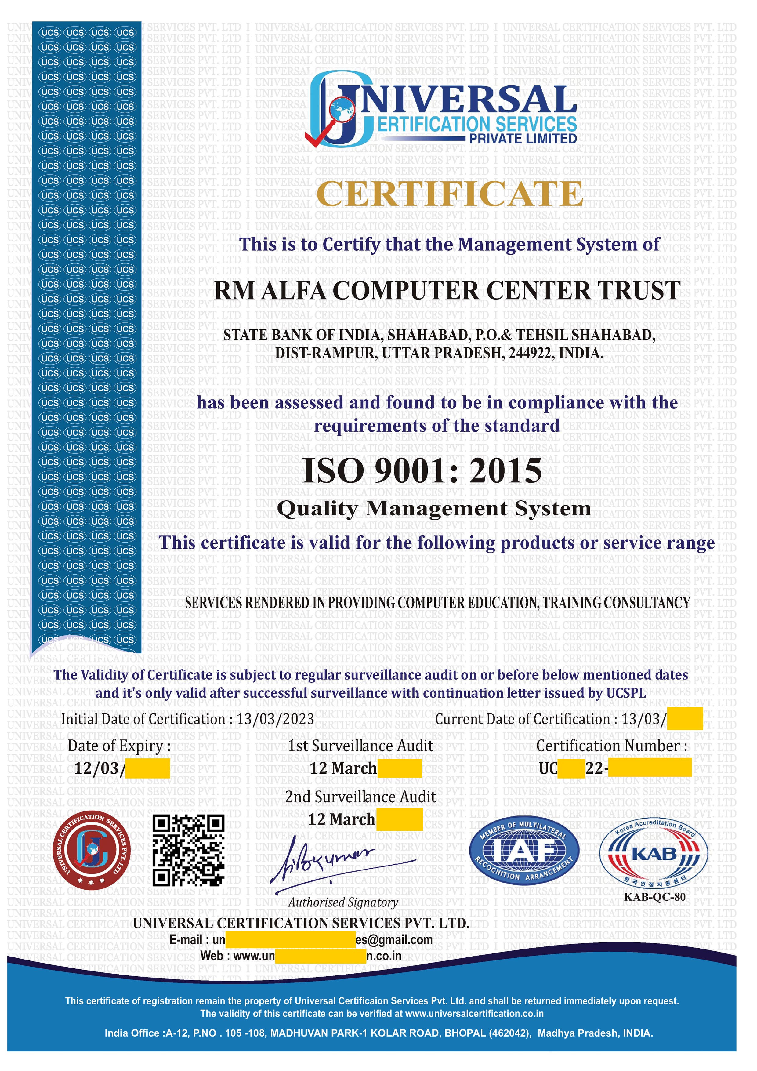 RM ALFA CERTIFICATE
