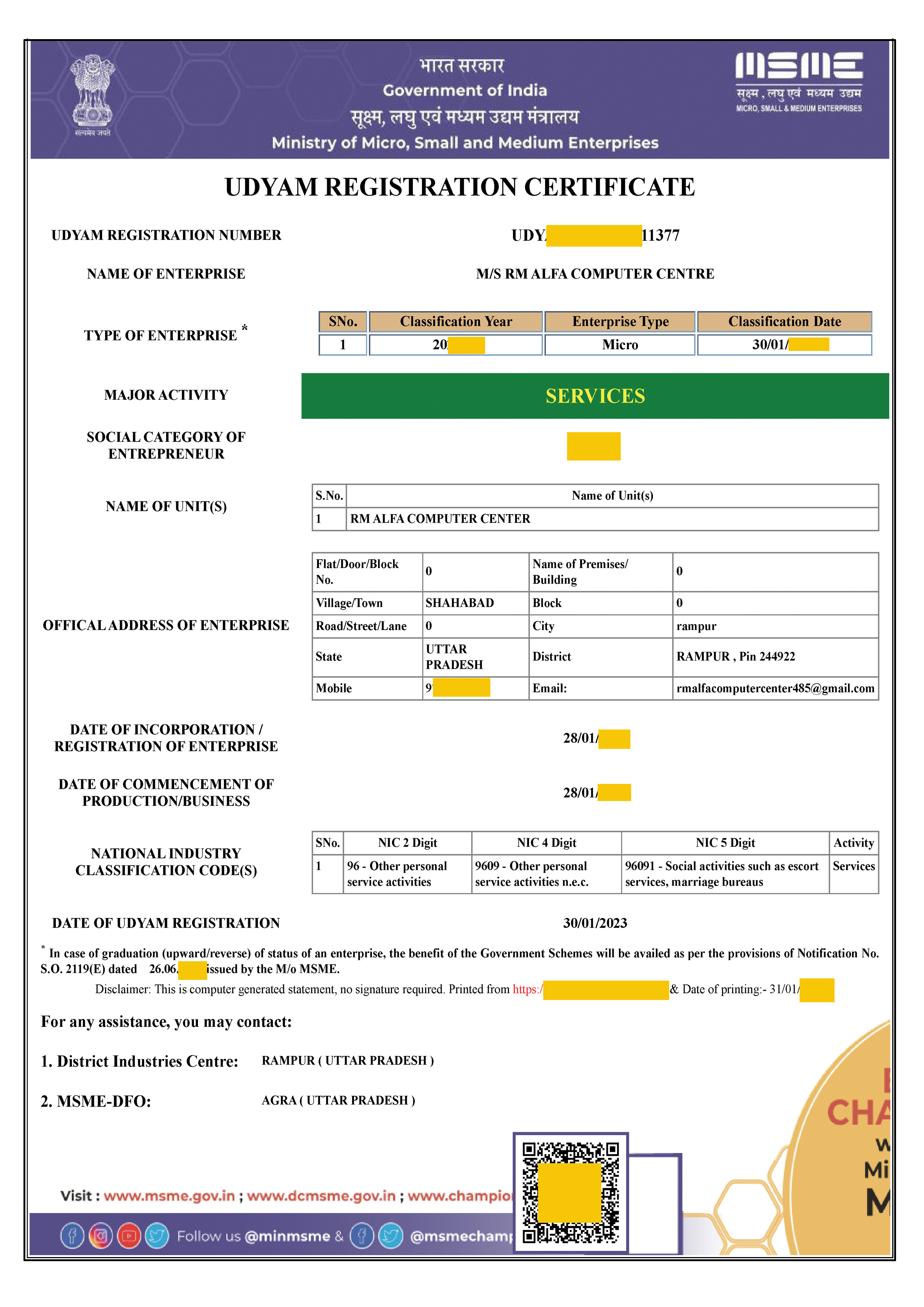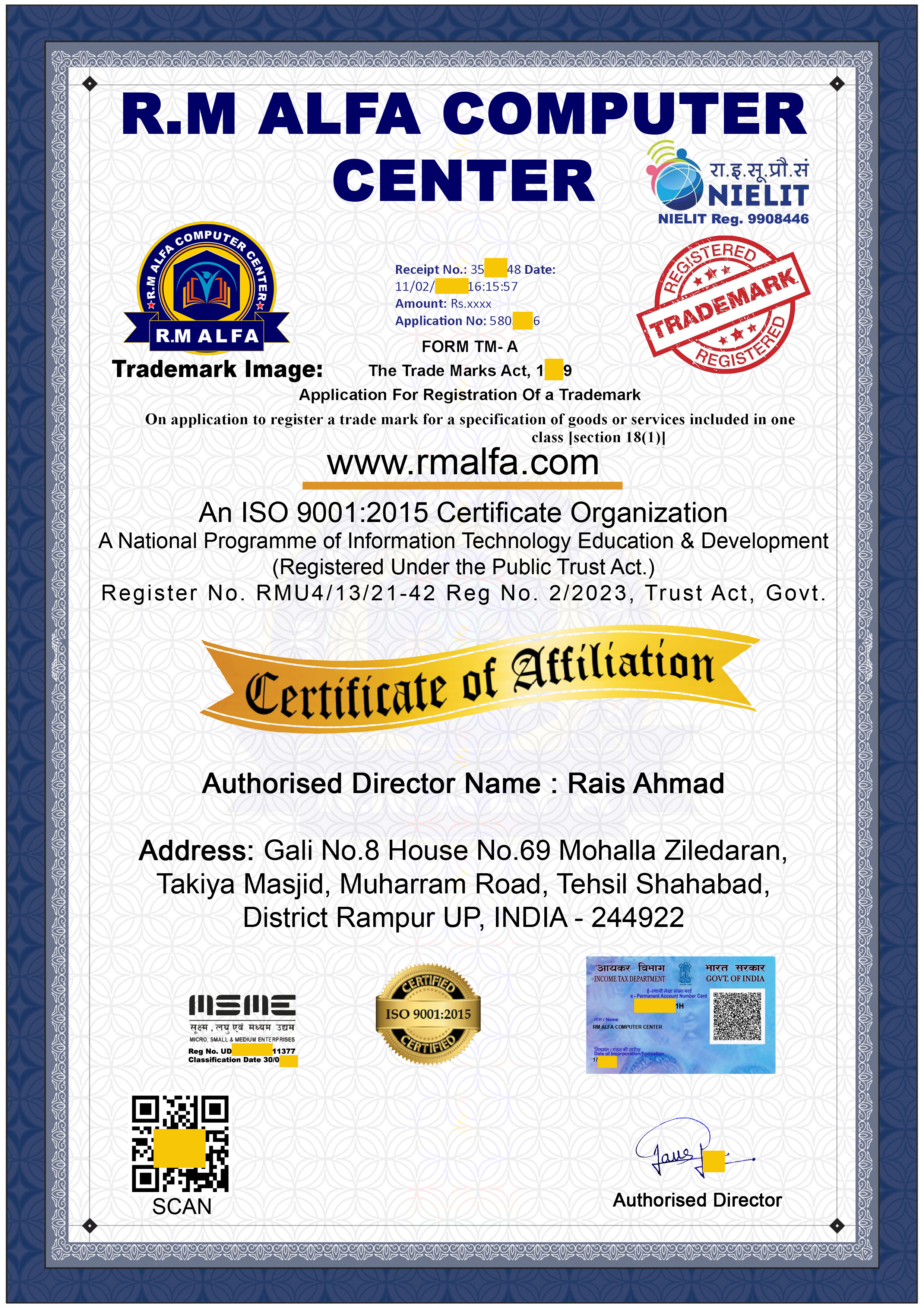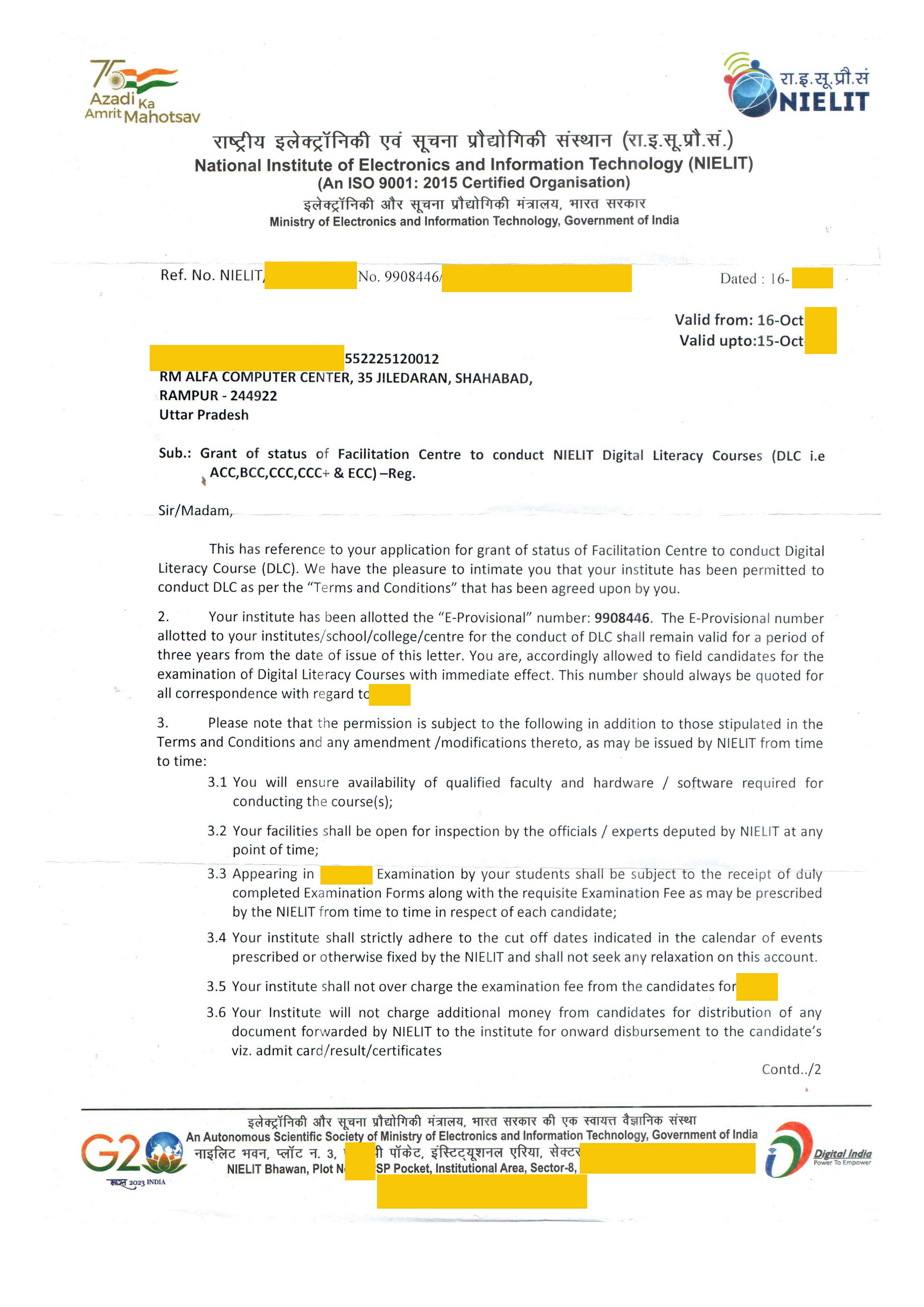 Ministry of Electronics & Information Technology Government of India Approved Facilitation Centre of National Institute of Electronics & Information Technology (NIELIT) (An autonomous Scientific of Meity Govt. of India)
