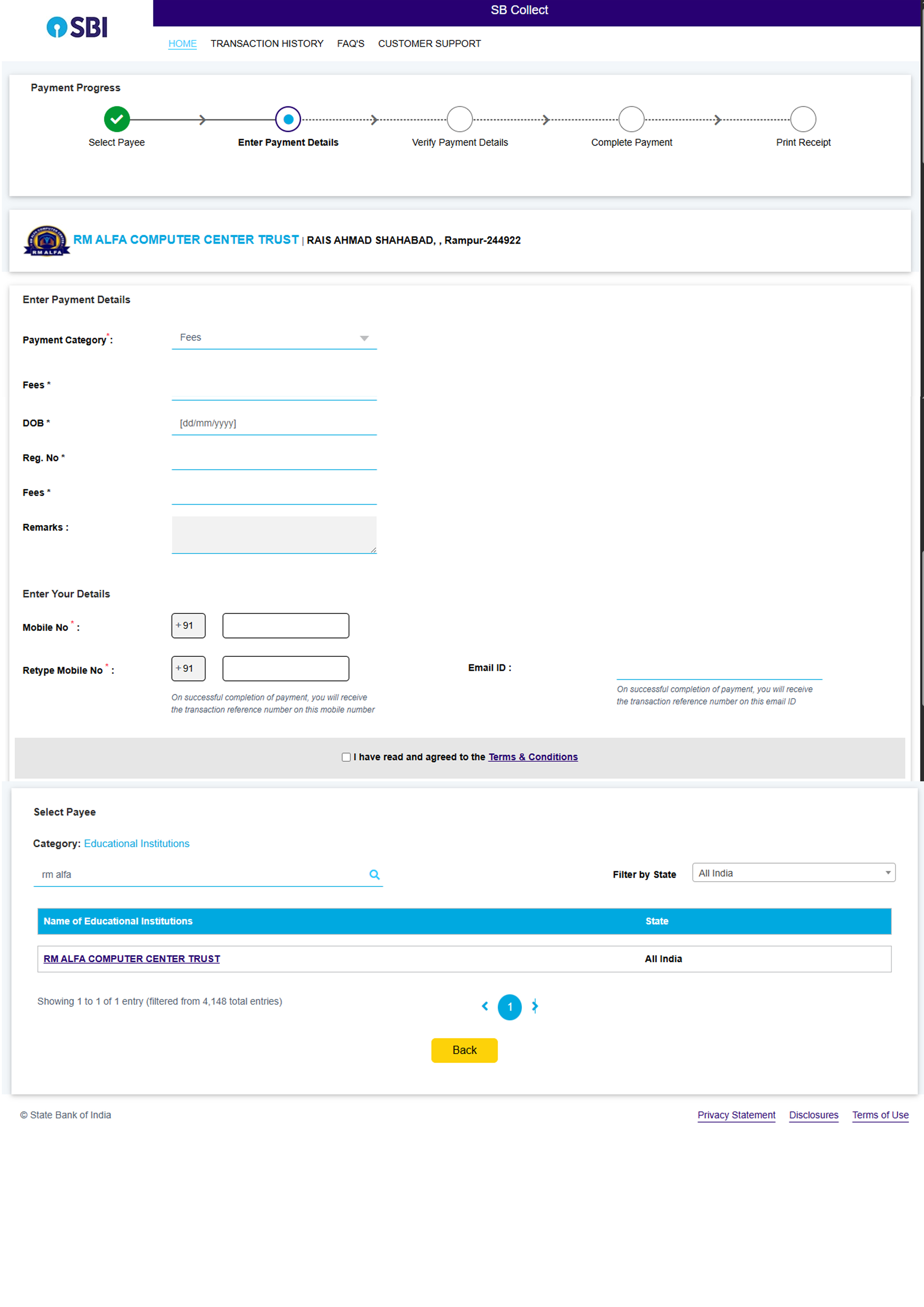 Student SBI Mail Fees slip